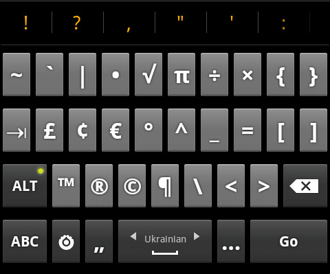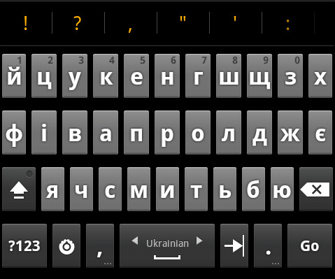 У новій версії системи, Android 2.3 (Gingerbread), з’явилась оновлена клавіатура з підтримкою української!