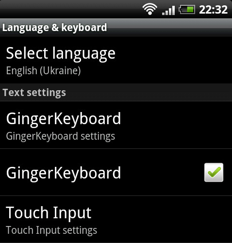 Встановіть позначку навпроти "GingerKeyboard", таким чином клавіатура активується: