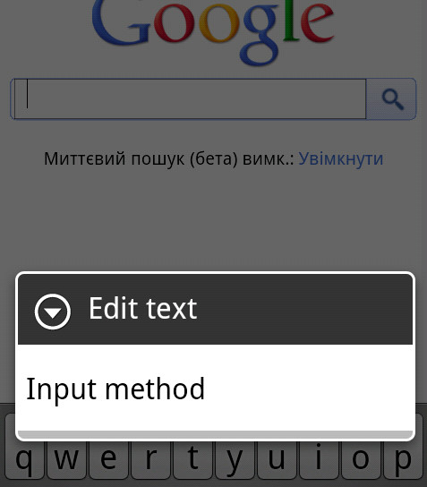 Торкніться пальцем поля, куди зазвичай вводиться текст (наприклад рядок пошуку) та затримайте дотик.